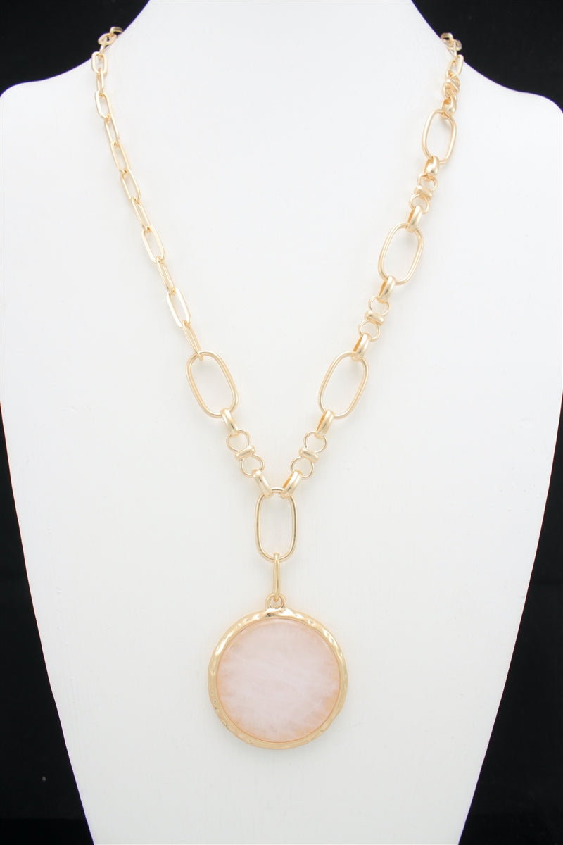 Modern minimalism meets organic beauty in this sleek statement necklace. Framed in a gleaming gold setting, the dark stone provides a sophisticated contrast to the bright metal, making this an effortlessly cool accessory for layering or wearing solo.