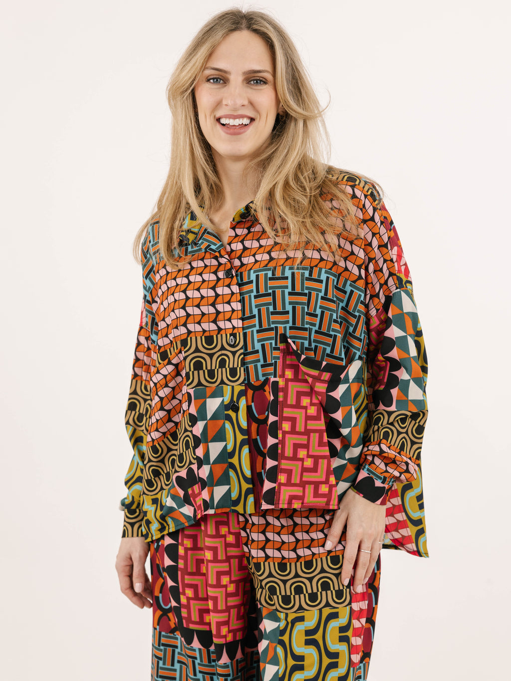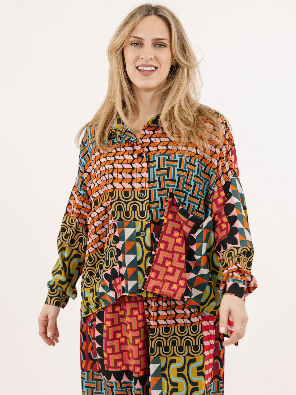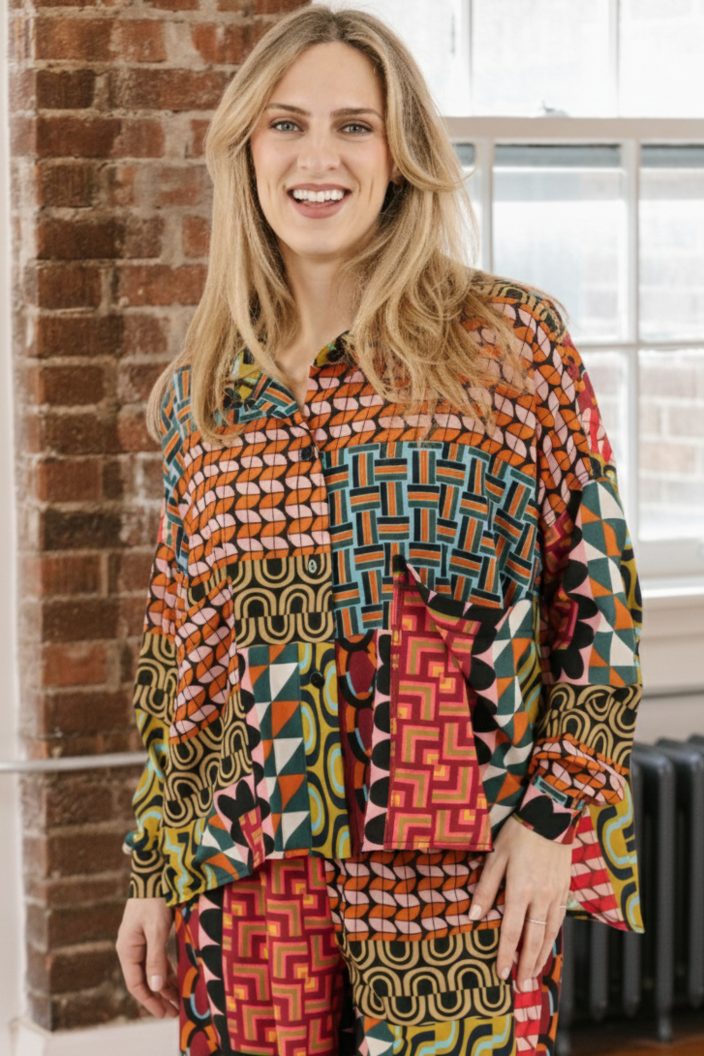 The interesting texture, easy fluid drape and soft hand are exactly why we chose this beautiful bubble crepe to be the backdrop of our inspiring new digital prints. Not only are they bright, inspiring conversation starting prints, our process is a more sustainable option
