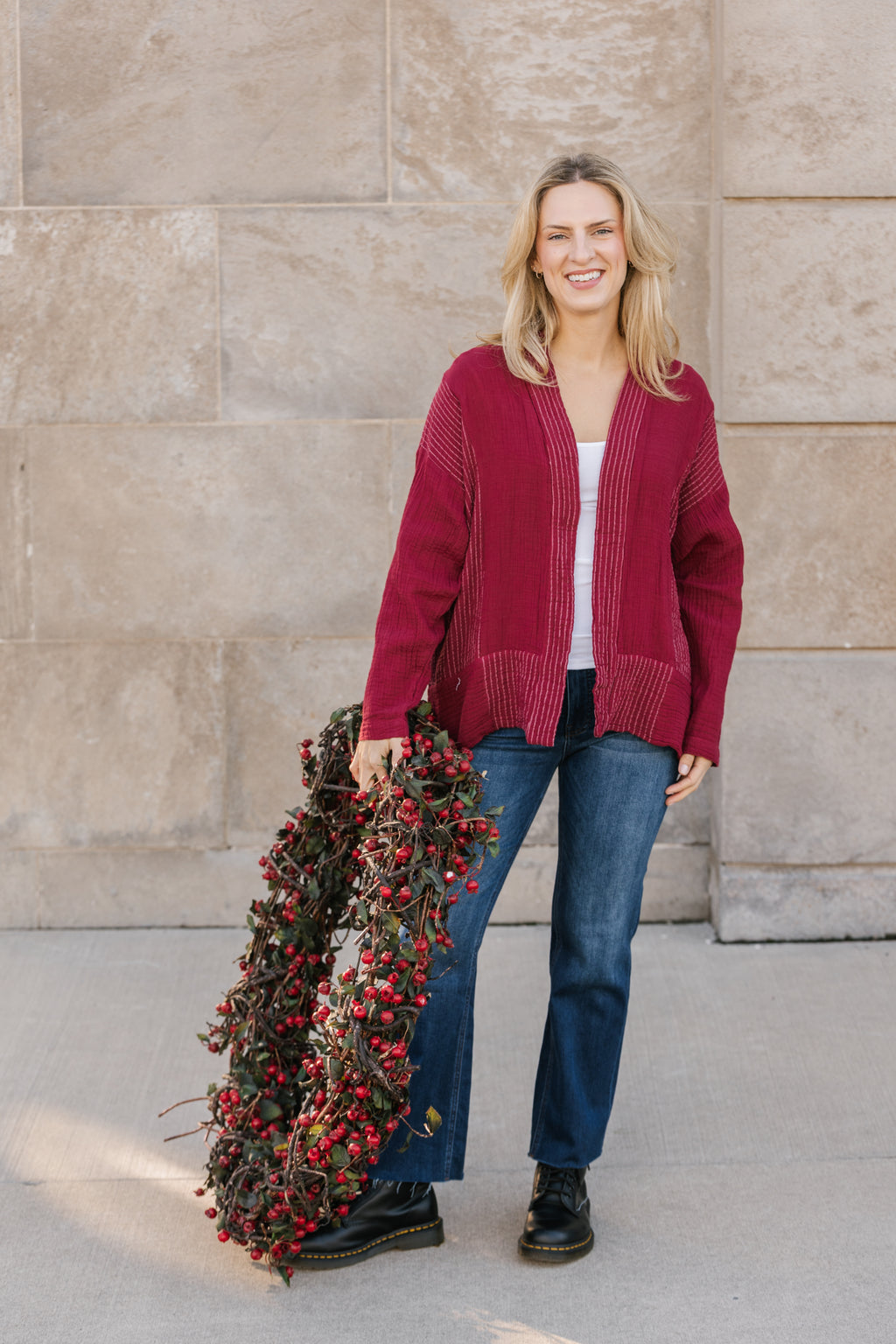 loosely-woven texture with a slight vertical stretch. We focus on having minimal environmental impact by carefully selecting materials like this Cotton Gauze, as it is a wonderful long-lasting material and local to our artisan maker’s region.
