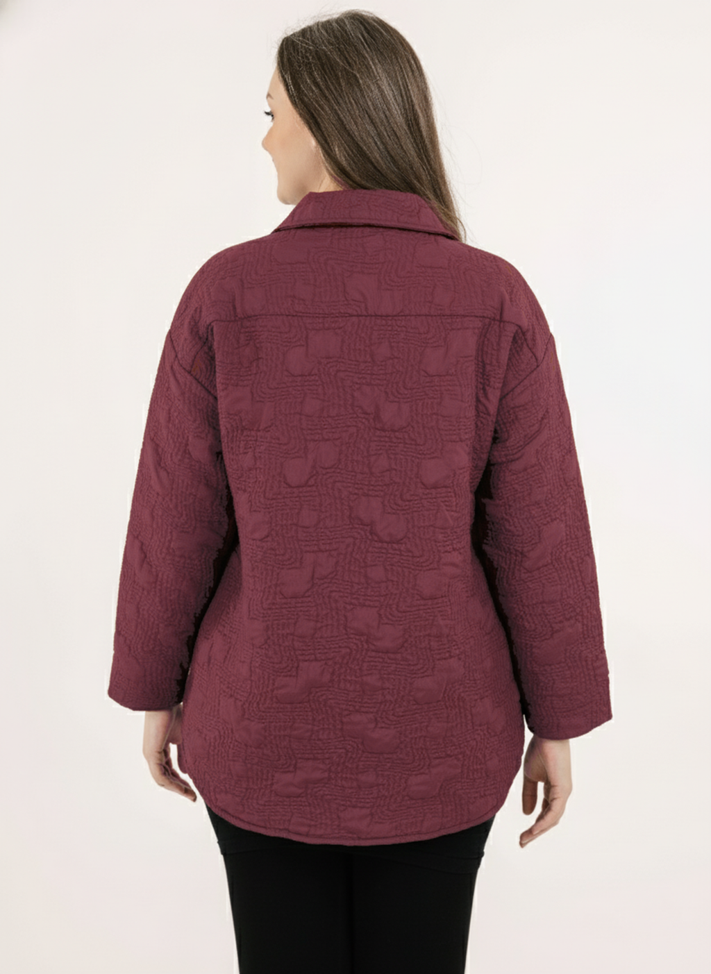 Our modern quilted fabric is versatile and flattering. The patterned quilting is accented with our unique buttons and snaps details making it ready for any occasion. Made with our family run small batch factory in Turkey.