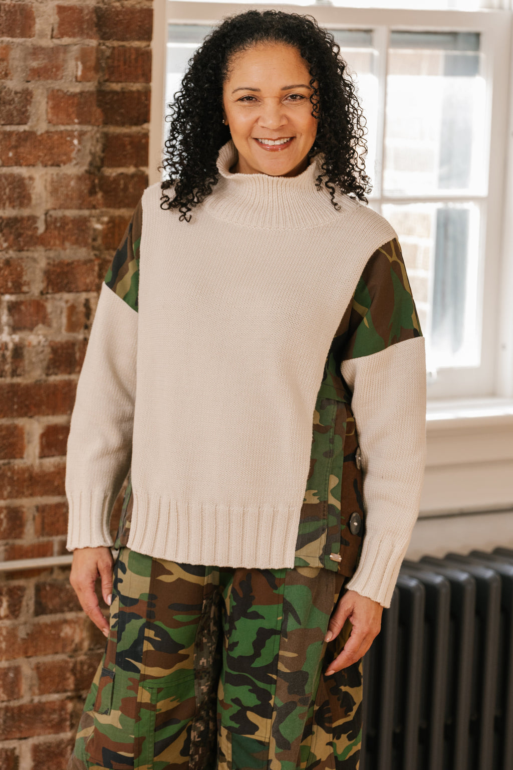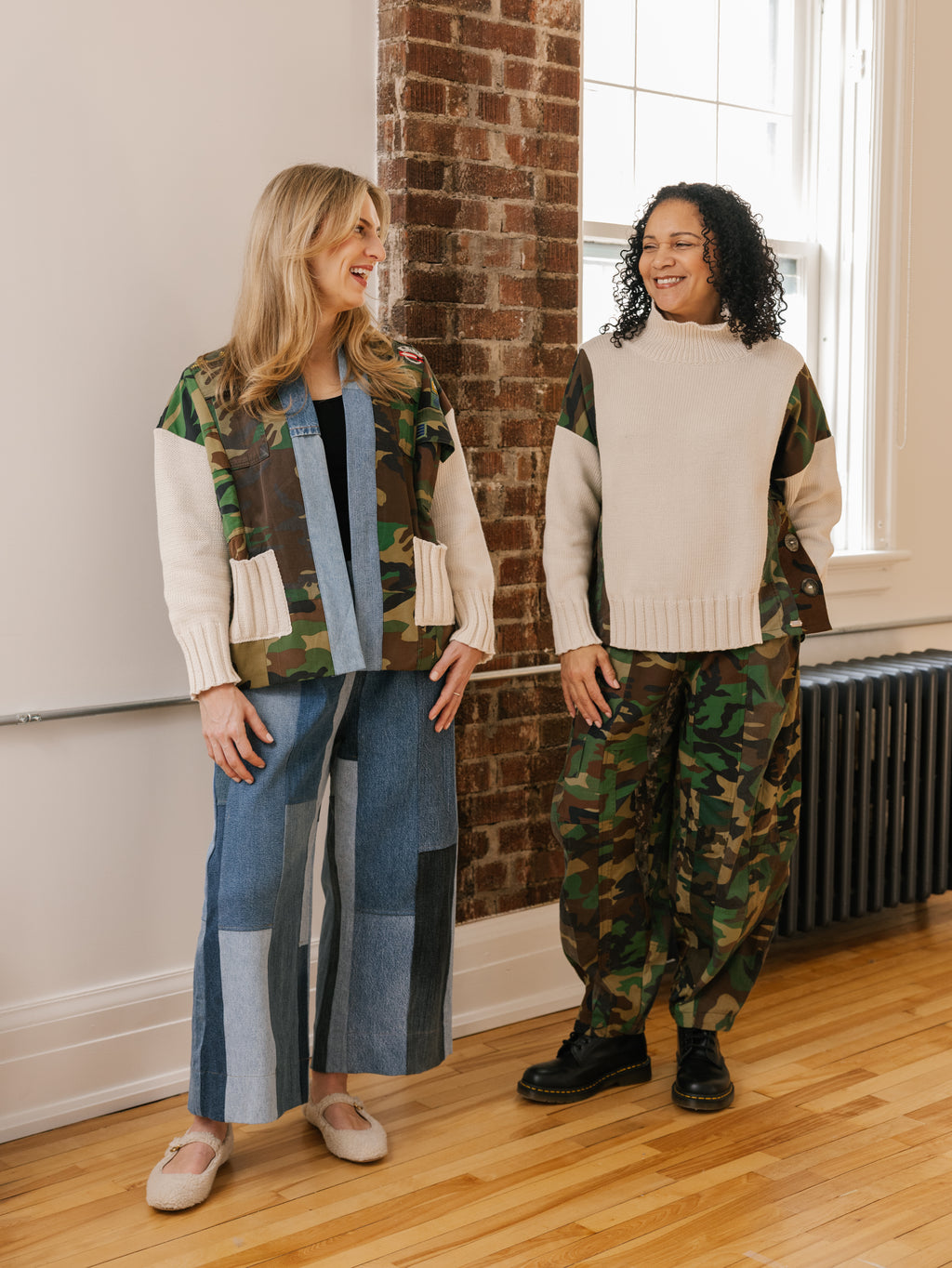Our newest Camo Collection launches with pieces being made using upcycled Camo and deconstructed denim. Each piece is one-of-a-kind and designed by deconstructed Camo, denim and includes our hand loomed 100% cotton knits. This diverts it from the landfills and gives it new life.