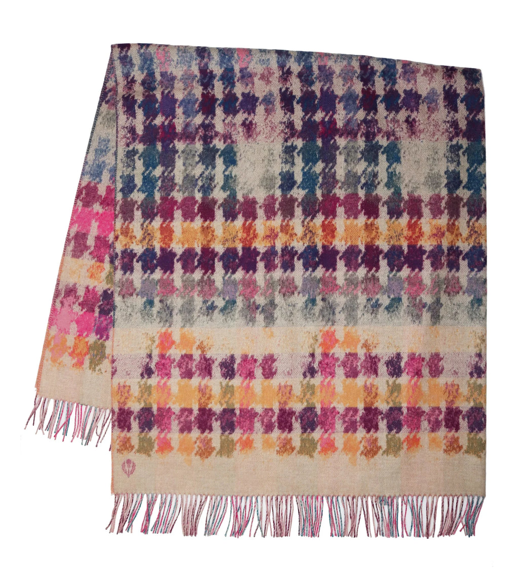 The coziness of Cashmink, now for your home! We've made our top-selling scarf quality into the softest throw blankets. This versatile and abstract houndstooth pattern is a perfect accessory for any room in your home. The vibrant colors make it a cozy accessory to have around for cool nights. Easy to pack, easy care - Producing our products with consideration for the health our environment is very much a part of our philosophy at FRAAS. All Cashmink accessories are certified according to Öko-Tex Standard 100, hypo-allergenic, and are made according to German quality standards in our own German factory. The acrylic fibers used here are finer than cashmere, with the same soft warmth at a much better value. The best gifts come from the heart. And FRAAS.
