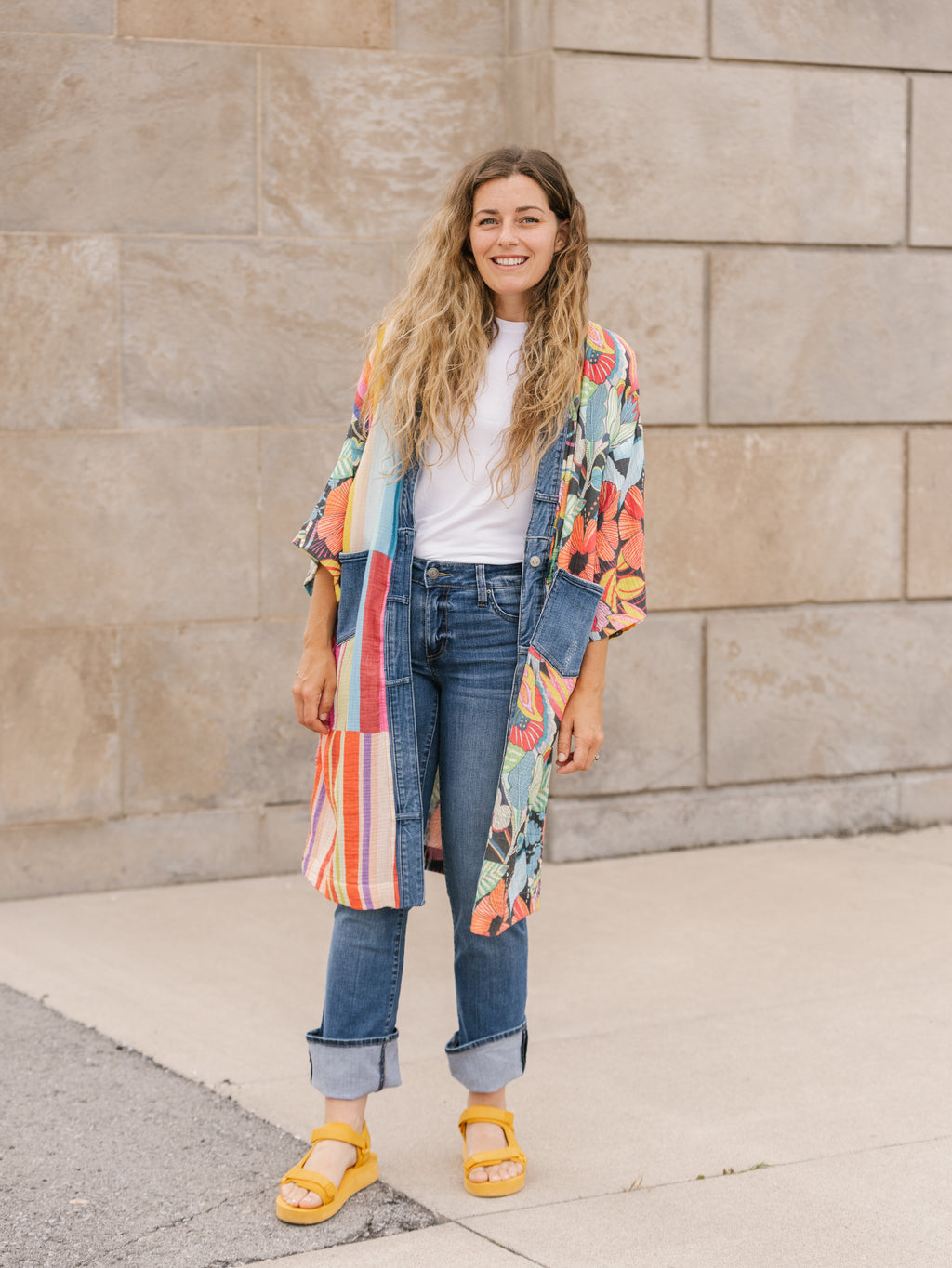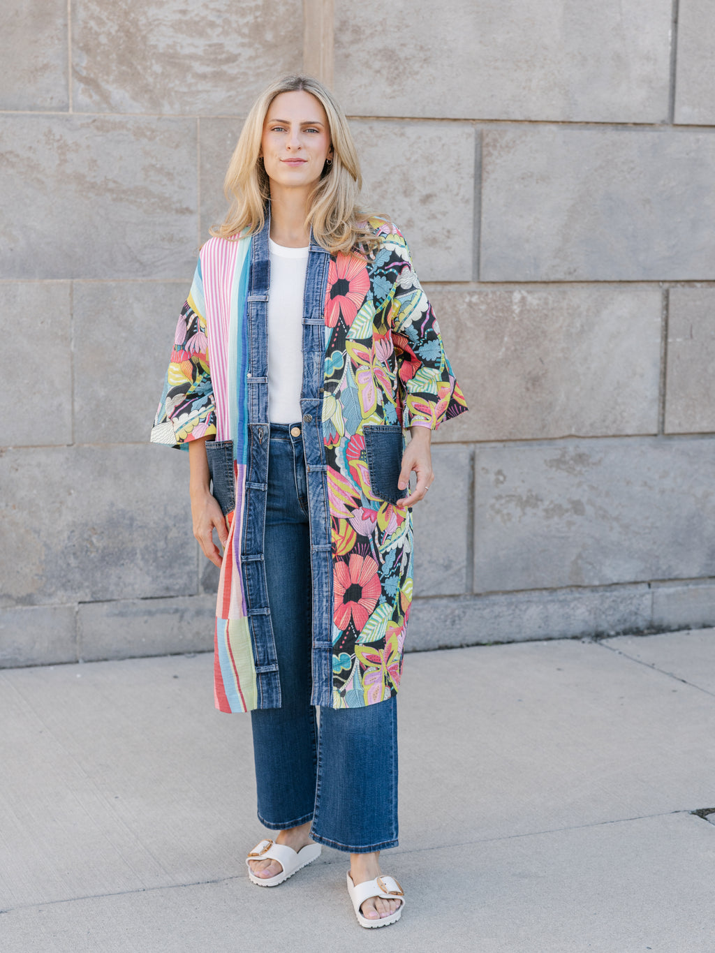 These pieces have been made using upcycled button down shirt, each piece is one-of-a-kind and designed combining deconstructed vintage denim and upcycled button down shirt. This diverts it from the landfills and gives it new life.