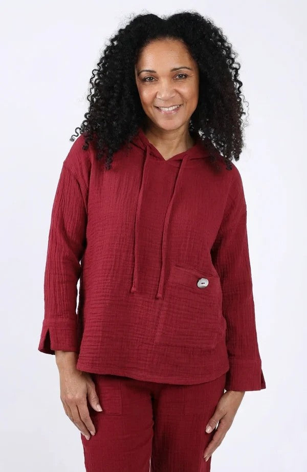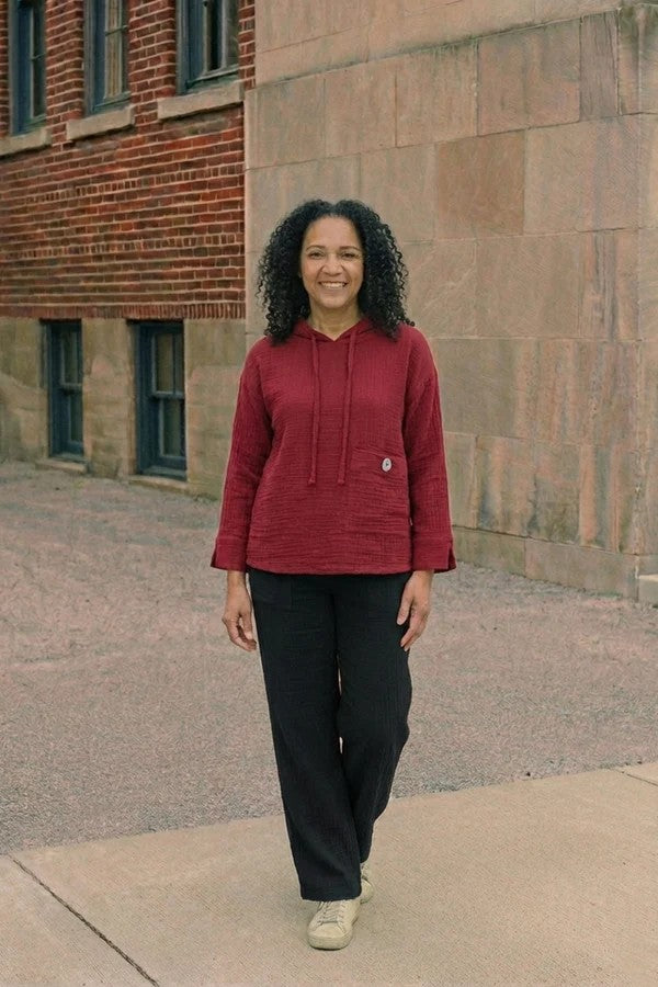 Our Cotton Gauze fabric is made of soft 100% natural cotton fibers that make it breathable, hypoallergenic and light-weight. It is woven using a special technique that involves twisting horizontal warp threads around the vertical weft threads, resulting in a soft, crinkled, and loosely-woven texture with a slight vertical stretch. We focus on having minimal environmental impact by carefully selecting materials like this Cotton Gauze, as it is a wonderful long lasting material and local to our artisan maker’s region.