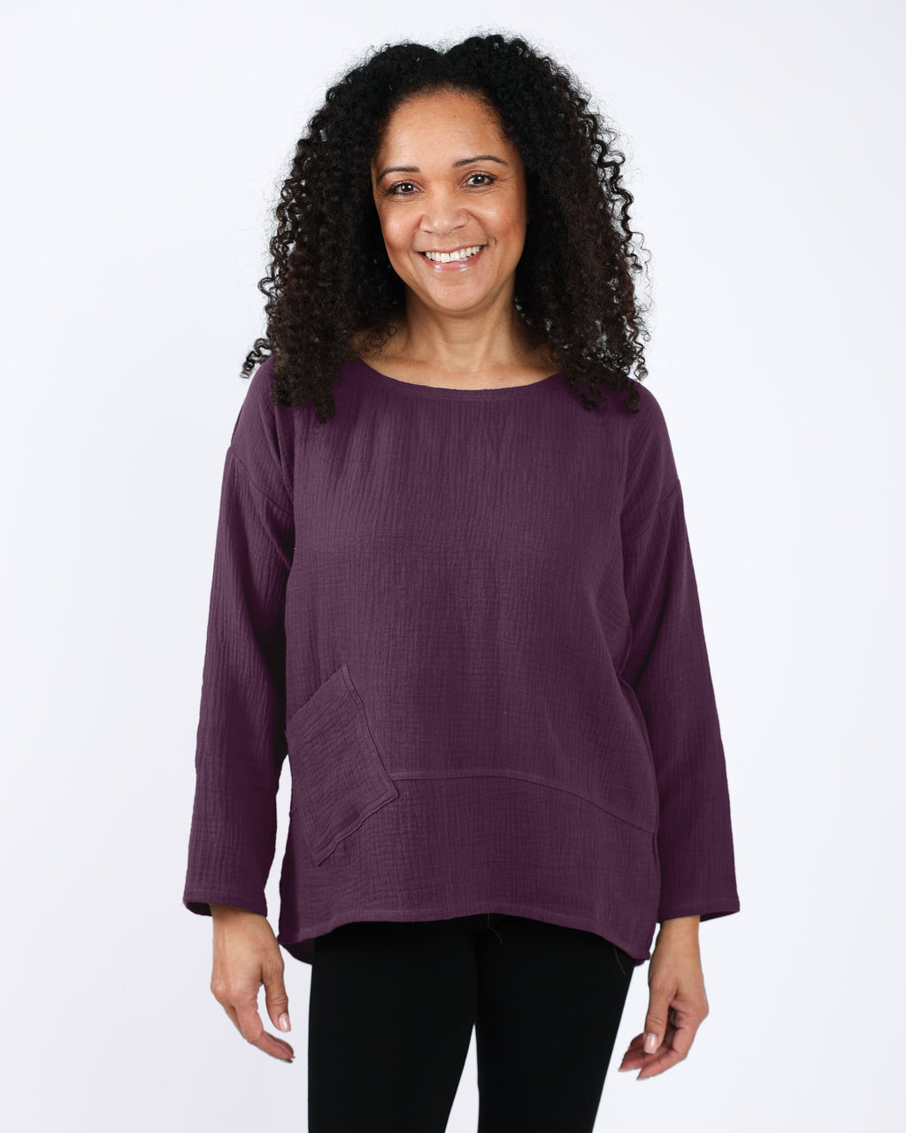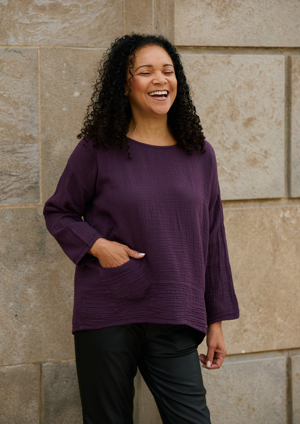Our Cotton Gauze fabric is made of soft 100% natural cotton fibers that make it breathable, hypoallergenic and light-weight. It is woven using a special technique that involves twisting horizontal warp threads around the vertical weft threads, resulting in a soft, crinkled, and loosely-woven texture with a slight vertical stretch. We focus on having minimal environmental impact by carefully selecting materials like this Cotton Gauze, as it is a wonderful long lasting material and local to our artisan maker’s region.