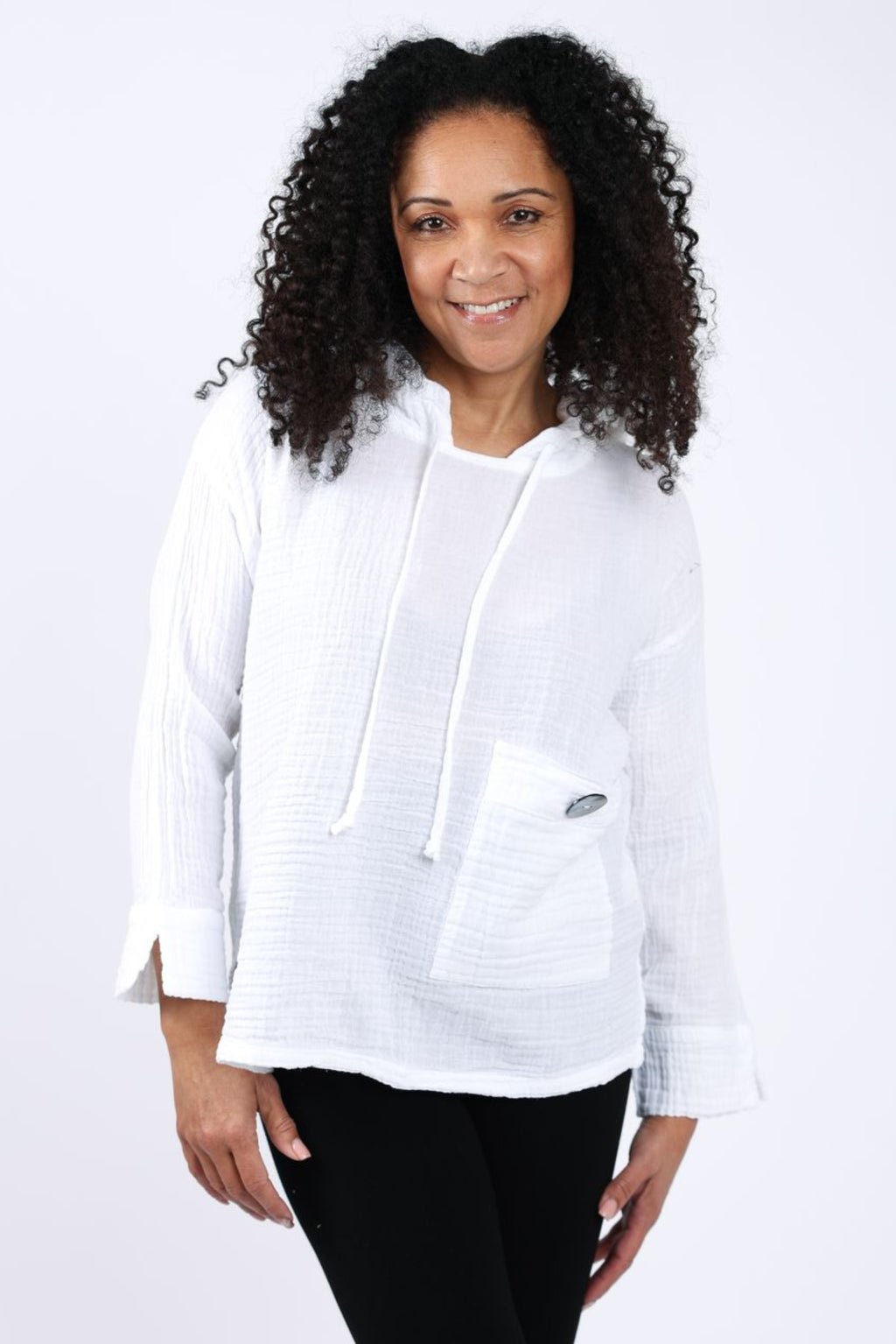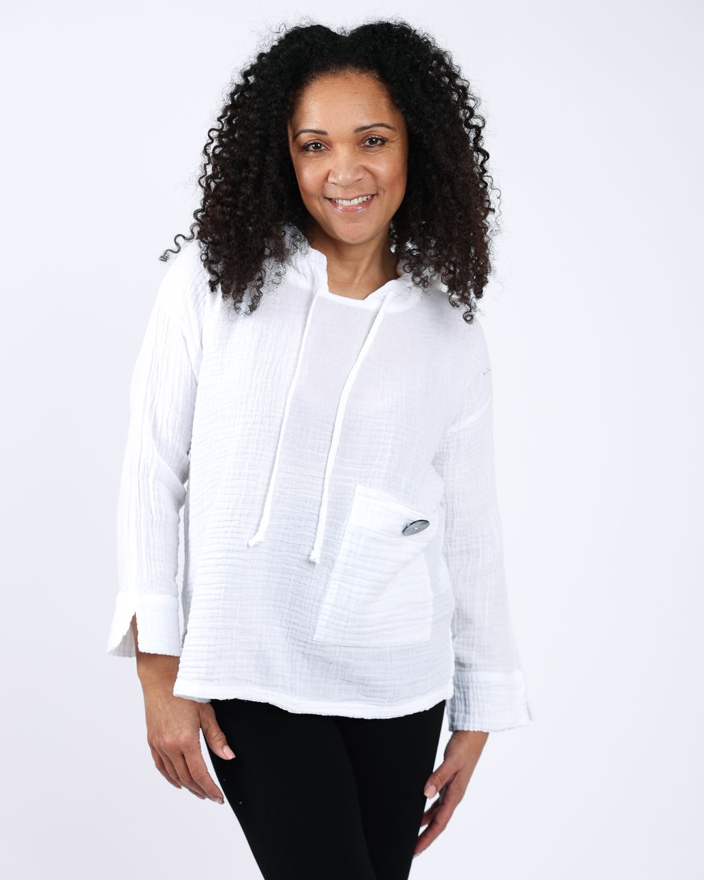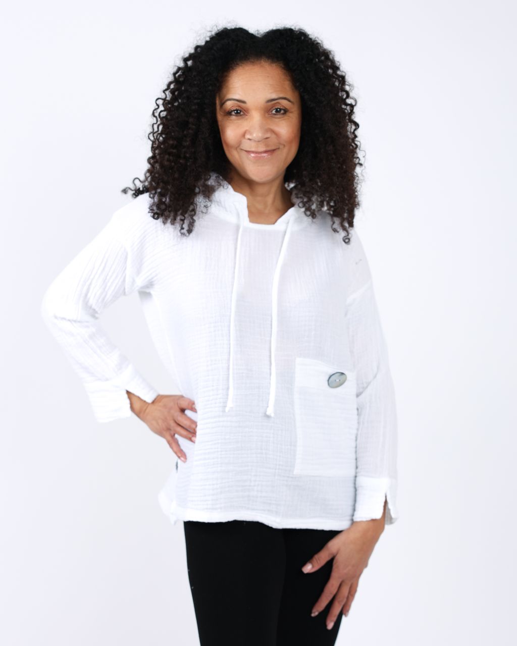 Our Cotton Gauze fabric is made of soft 100% natural cotton fibers that make it breathable, hypoallergenic and light-weight. It is woven using a special technique that involves twisting horizontal warp threads around the vertical weft threads, resulting in a soft, crinkled, and loosely-woven texture with a slight vertical stretch. We focus on having minimal environmental impact by carefully selecting materials like this Cotton Gauze, as it is a wonderful long lasting material and local to our artisan maker’s region.