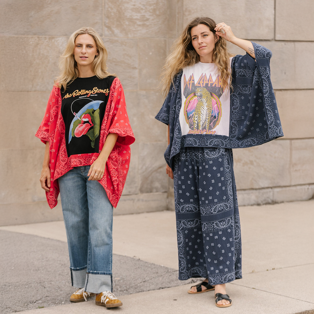 These pieces have been made using upcycled Rock band tees, each piece is one-of-a-kind and designed combining deconstructed vintage denim and upcycled band tees. This diverts it from the landfills and gives it new life.